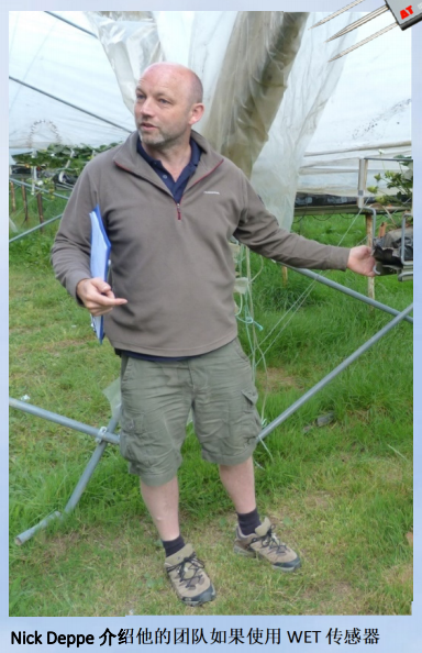 Clock House农场坐落在梅德斯通以南几英里的肯特郡起伏的山丘上。该农场十分广阔,占地面积达250英亩,种植了多种水果,包括草莓、覆盆子和黑莓Clock House农场是著名的园艺创新农场,也是最早采用架台种植草莓的商业农场之一(20世纪90年代末)。自2008年以来,他们一直使用Delta‐T WET套件(包括WET‐2传感器和HH2读取装